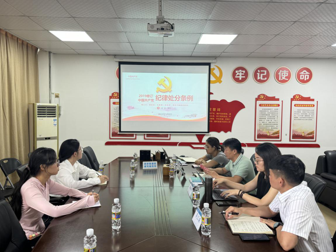 2024年5月8日,400全讯白菜网直属党支部在行政楼422会议室召开支部党员大会,开展学习新修订《中国共产党纪律处分条例》主题党日活动。支部全体党员参会,直属党支部书记黄灼主持会议。