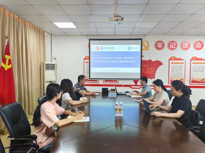 2024年5月15日,400全讯白菜网直属党支部在行政楼422会议室召开支部党员大会,组织开展“观看警示教育片,警钟长鸣促廉洁”主题党日活动。支部全体党员参会,直属党支部书记黄灼主持会议。