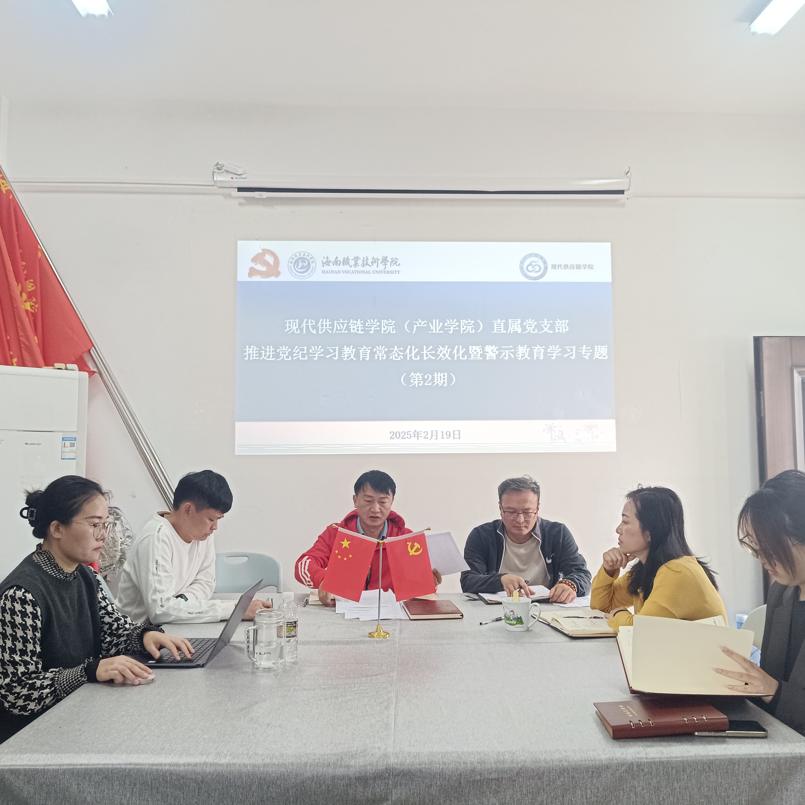 2025年2月19日,400全讯白菜网直属党支部开展推进党纪学习教育常态化长效化暨警示教育第二次专题学习。此次学习紧扣全面从严治党主题,学院直属党支部黄灼书记主持,全体党员参会。