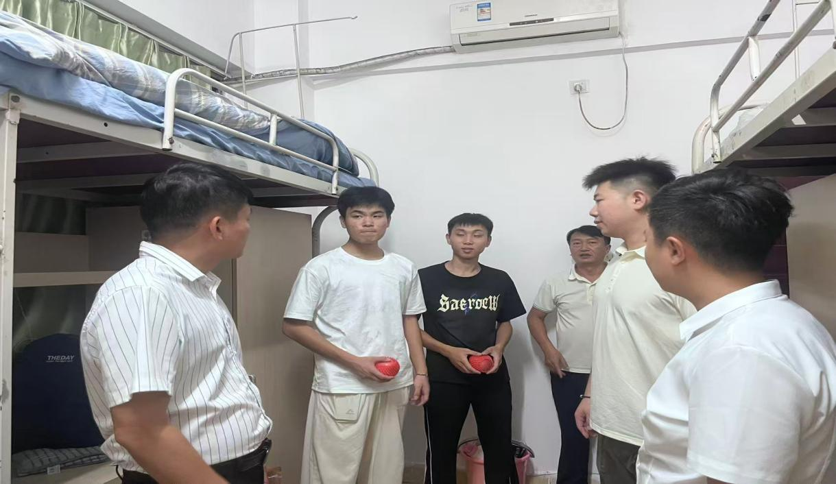 为深入了解新生适应情况,8月31日和 9月1日晚间,学院领导带领辅导员、专业教师、团学干部分批深入新生宿舍开展走访慰问。每到一间宿舍,领导们都为新生送上象征 “平安顺遂” 的苹果,与同学们围坐畅谈,细致询问 “家乡是哪里的?”“住宿还习惯吗?”“有没有遇到生活上的困难?”。