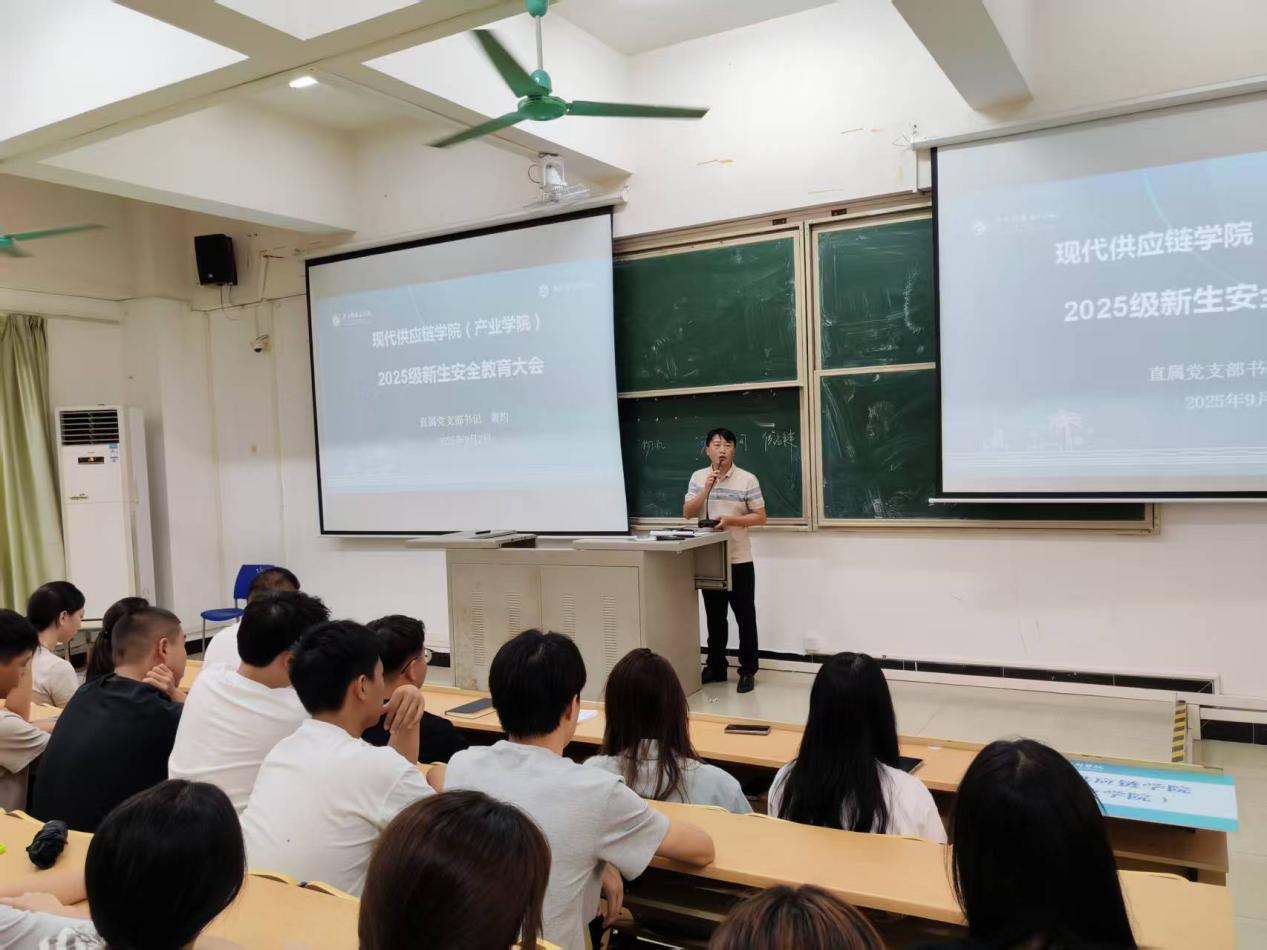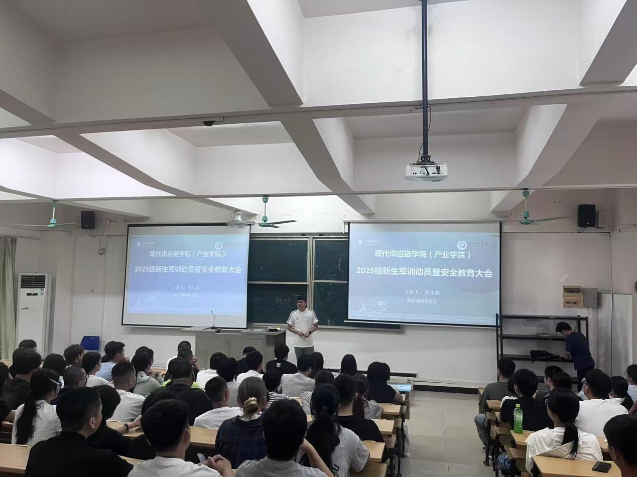 为帮助新生上好入学“第一课”,以昂扬姿态开启军训生活,9月2日上午,我院在二教110召开2025级新生军训动员暨安全教育大会。本次出席大会的老师有:直属党支部书记黄灼,学工办主任吴江森,团支部负责人辛宇,供应链运营专业老师曾子祺,物流管理专业老师黄国华等,以及参加大会的2025级全体新生。